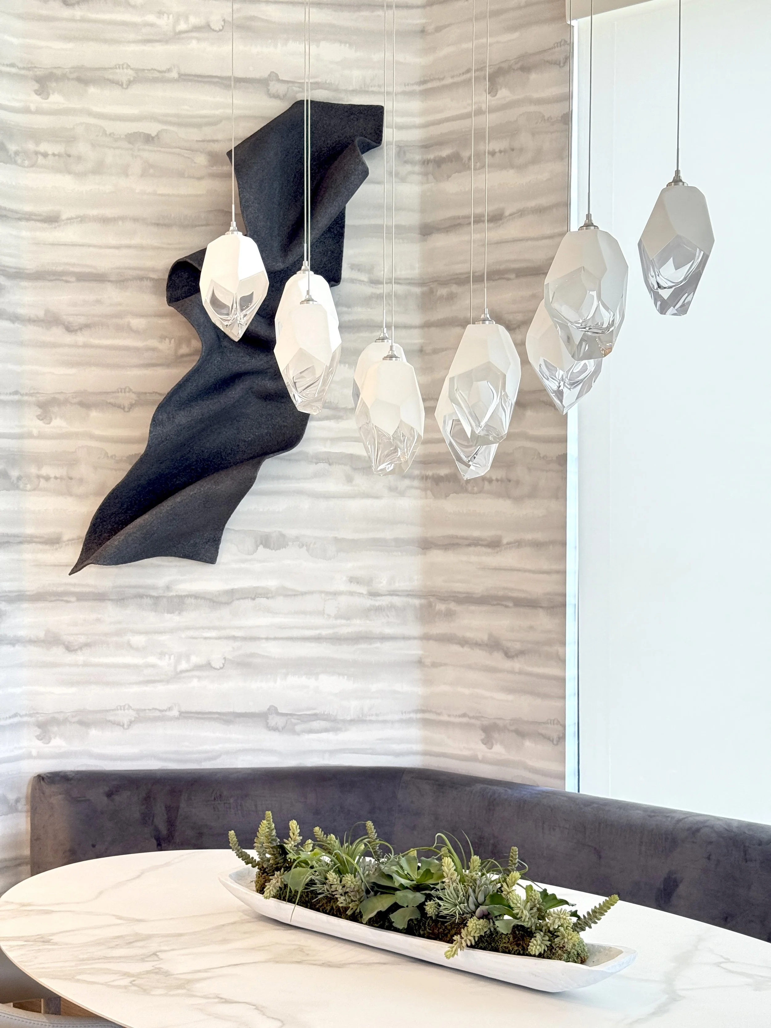 Welcome to the 'Gourmet & Gather Suite', an exquisite blend of luxury and comfort in the heart of your home. This stunning space features a light and bright, breathtaking breakfast table ceiling fixture that shimmers like precious oversized gems, setting a sophisticated tone for the entire area, creating an inviting and opulent ambiance. Every detail has been meticulously crafted, with built-in features that offer both functionality and elegance. From the seamless TV wall design and custom furnishings, this suite exudes a sense of refined sophistication and comfort, making it the ultimate destination for culinary creations and cherished moments with loved ones.